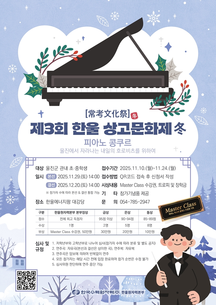 [½Ã»çÄÚ¸®¾ÆÀú³Î=±è¿¬ÇÐ ±âÀÚ] Çѱ¹¼ö·Â¿øÀÚ·Â(ÁÖ) ÇÑ¿ï¿øÀڷº»ºÎ(º»ºÎÀå À̼¼¿ë, ÀÌÇÏ ÇѿﺻºÎ)´Â ¿ïÁø¿¡¼ ÀÚ¶ó´Â ¾ÆÀ̵éÀÇ À½¾ÇÀû Àç´ÉÀ» ¹ß±¼ÇÏ¿© ¿¹¼ú °¨¼ö¼ºÀ» Ű¿ì°íÀÚ ¿À´Â 11¿ù 29ÀÏ, 12¿ù 20ÀÏ¿¡ Çѿ£³ÊÁöÆÊ¿¡¼ Á¦3ȸ ‘ÇÑ¿ï »ó°í¹®ÈÁ¦ °Ü¿ï(ÔÏ)Æí’ 'ÇǾƳë ÄáÄí¸£'¸¦ °³ÃÖÇÑ´Ù.
