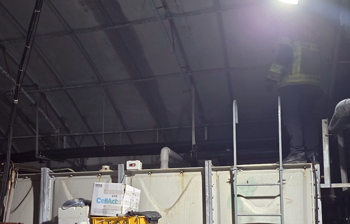 | »ç¸Á»ç°í°¡ ¹ß»ýÇÑ À°»ó¾ç½ÄÀå ´ëÇü Àú¼öÁ¶ À§¿¡¼ ¼Ò¹æ´ë¿øÀÌ ÇöÀåÀ» »ìÇÇ´Â ¸ð½À. /°æ³²¼Ò¹æº»ºÎ Á¦°ø |