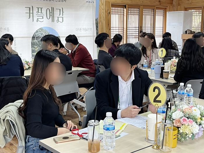 À̹ø Çà»ç¿¡´Â ÃÑ 30¸íÀÇ Ã»Ãá³²³à°¡ Âü¿©ÇßÀ¸¸ç, ¡â¸Å·Â¼ÒÅë Æ¯° ¡â¿¹³¢¸¶À» Åõ¾î ¡âÄ¿Çà ÇѺ¹Ã¼Çè µîÀÌ ÁøÇàµÇ¾ú´Ù. Ä¿Çà ÇѺ¹Ã¼ÇèÀº ÀüÅ빮ȸ¦ üÇèÇÏ°í »çÁøÀ» ÃÔ¿µÇϸç Âü¿©ÀÚµéÀÌ ÀÚ¿¬½º·´°Ô ¾î¿ì·¯Áú ¼ö ÀÖµµ·Ï ÇØ ƯÈ÷ Âü¿©ÀÚÀÇ È£ÀÀÀÌ ³ô¾Ò´Ù. Çà»ç °á°ú ÃÑ 8½Ö(16¸í)ÀÇ Ä¿ÇÃÀÌ ¼º»çµÇ¸ç ¸ÅĪ·ü 53%¶ó´Â °í¹«ÀûÀÎ ¼º°ú¸¦ °Åµ×´Ù.