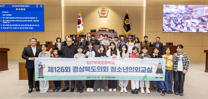 [½Ã»çÄÚ¸®¾ÆÀú³Î=±è¿¬ÇÐ ±âÀÚ] °æ»óºÏµµÀÇȸ(ÀÇÀå ¹Ú¼º¸¸)´Â 12ÀÏ º»È¸ÀÇÀå¿¡¼ ±èõºÎ°îÃʵîÇб³ Çлý 22¸íÀÌ Âü¿©ÇÑ °¡¿îµ¥ 'Á¦126ȸ °æ»óºÏµµÀÇȸ û¼Ò³âÀÇȸ±³½Ç'À» °³ÃÖÇß´Ù.