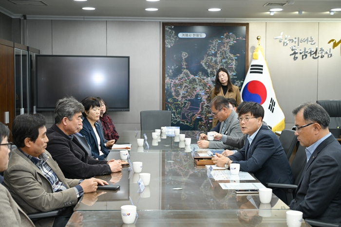 [½Ã»çÄÚ¸®¾ÆÀú³Î=Á¤Á¾¹Î ¼±ÀÓ±âÀÚ] °ÅÁ¦½Ã(½ÃÀå º¯±¤¿ë)´Â 11ÀÏ ³ó¾÷ÀÎÀÇ ³¯À» ¸Â¾Æ Áö¿ª³ó¾÷ÀÎ ´ëÇ¥µé°ú °£´ãȸ¸¦ °³ÃÖÇß´Ù.