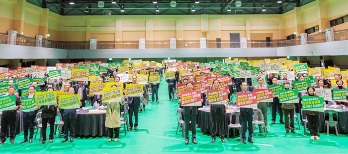 À̳¯ Çà»ç¿¡´Â 17°³ À¾·¸é ȸ¿ø ¹× »çȸ´ÜüÀå µî ¾à 400¿© ¸íÀÌ Âü¼®ÇÏ¿© ÇѸ¶À½ ÇѶæÀ¸·Î “¿Àµµ»ê ¾ç¼ö¹ßÀü¼Ò ¹Ýµå½Ã À¯Ä¡ÇÏÀÚ”¶ó´Â ±¸È£¸¦ ¿ÜÄ¡¸ç À¯Ä¡ ¿°¿øÀ» Áý°áÇß´Ù.