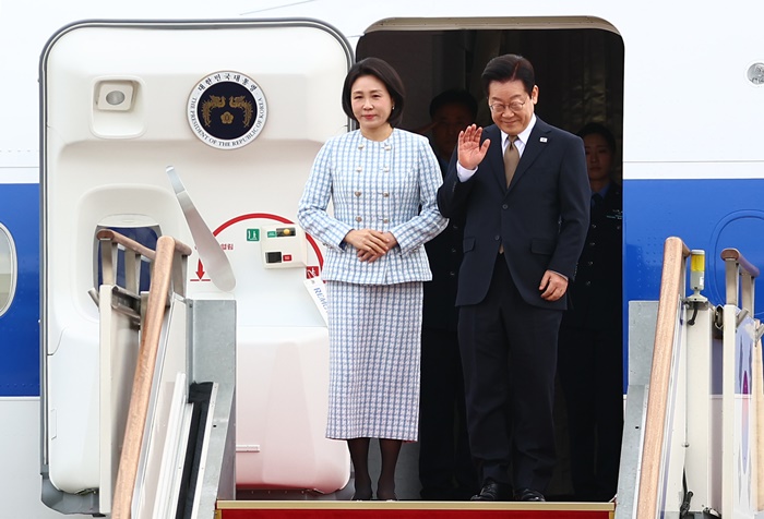 | ÁÖ¿ä 20°³±¹(G20) Á¤»óȸÀÇ Âü¼®À» °è±â·Î UAE·ÀÌÁýÆ®·Æ¢¸£Å°¿¹ µî 4°³±¹ ¼ø¹æ¿¡ ³ª¼´Â ÀÌÀç¸í ´ëÅë·É°ú ±èÇý°æ ¿©»ç°¡ 17ÀÏ ¼º³² ¼¿ï°øÇ׿¡¼ °ø±º 1È£±â¿¡ ¿Ã¶ó ÀλçÇϰí ÀÖ´Ù. /¿¬ÇÕ´º½º |