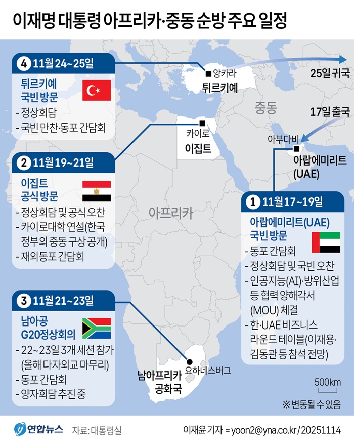 [½Ã»çÄÚ¸®¾ÆÀú³Î=±è¿¬ÇÐ ±âÀÚ] ÀÌÀç¸í ´ëÅë·ÉÀÌ 16ÀÏ ¿ÀÀü ¼¿ï°øÇ×À» ÅëÇØ ¾Æ¶ø¿¡¹Ì¸®Æ®(UAE)ÀÇ ¼öµµ ¾ÆºÎ´Ùºñ·Î Ãâ±¹ÇÏ¸é¼ ÁÖ¿ä 20°³±¹(G20) Á¤»óȸÀÇ Âü¼®À» °è±â·Î ÇÑ ¾ÆÇÁ¸®Ä«·Áßµ¿ 4°³±¹ ¼ø¹æ ÀÏÁ¤À» ½ÃÀÛÇß´Ù.