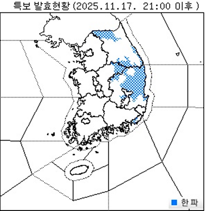 ÇÑÆÄÁÖÀǺ¸´Â '¾ÆÄ§ ÃÖÀú±â¿ÂÀÌ Àü³¯º¸´Ù 10µµ ÀÌ»ó ³»·Á°¡ 3µµ ÀÌÇÏÀ̰í, Æò³â±â¿Âº¸´Ù 3µµ ³·À» °ÍÀ¸·Î ¿¹»óµÉ ¶§', '¾ÆÄ§ ÃÖÀú±â¿ÂÀÌ ¿µÇÏ 12µµ ÀÌÇÏÀÎ »óȲÀÌ ÀÌÆ² ÀÌ»ó Áö¼ÓÇÒ °ÍÀ¸·Î ¿¹»óµÉ ¶§', '±Þ°ÝÇÑ Àú¿Â Çö»óÀ¸·Î Áß´ëÇÑ ÇÇÇØ°¡ ¿¹»óµÉ ¶§' ¹ß·ÉµÈ´Ù.