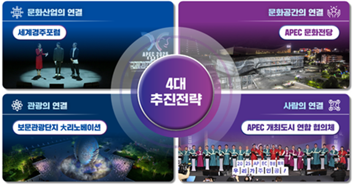 À̸¦ À§ÇØ ‘¼¼°è°æÁÖÆ÷·³’À» ´ëÇѹα¹ ¹®È»ê¾÷ °æÀï·ÂÀ» ¾÷±×·¹À̵åÇÏ´Â ¹®È ´Ùº¸½ºÆ÷·³À¸·Î ¹ßÀü½ÃÄÑ ±Û·Î¹ú ±³·ù ¹× ÇÑ·ù È®»êÀÇ ±³µÎº¸·Î ¸¸µé°í, ‘APEC ¹®ÈÀü´ç’À» °æÁÖ ¿¡ÀÌÆå(APEC)ÀÇ ¿ª»çÀû ·£µå¸¶Å© ½Ã¼³·Î ¸¸µé¾î APEC ȸ¿ø±¹ °£ ÇÙ½É ±³·ù․Çù·ÂÀÇ ÀåÀ¸·Î Ȱ¿ëÇÑ´Ù´Â °èȹÀÌ´Ù.
