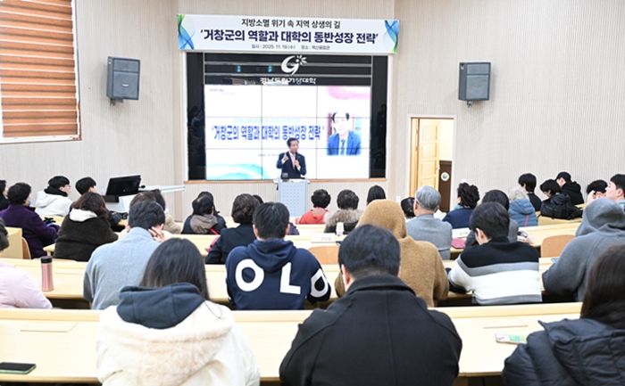[½Ã»çÄÚ¸®¾ÆÀú³Î=Á¤Á¾¹Î ¼±ÀÓ±âÀÚ] °ÅⱺÀº Áö³ 19ÀÏ °æ³²µµ¸³°Åâ´ëÇÐ ÃÊûÀ¸·Î ±¸Àθð °Åⱺ¼ö°¡ ‘Áö¹æ¼Ò¸ê À§±â ¼Ó Áö¿ª »ó»ýÀÇ ±æ, ÁöÀÚüÀÇ ¿ªÇÒ°ú ´ëÇÐÀÇ µ¿¹Ý ¼ºÀå Àü·«’À» ÁÖÁ¦·Î Çлý°ú ±³¿ø 120¸íÀ» ´ë»óÀ¸·Î Ư°À» ÁøÇàÇß´Ù°í ¹àÇû´Ù.