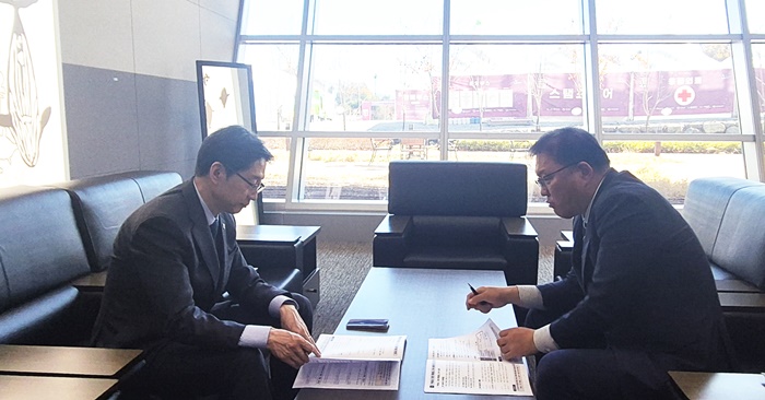 | Àå±Ý¿ë â¿ø½ÃÀå ±ÇÇÑ´ëÇà(¿À¸¥ÂÊ)ÀÌ ±è°æ¼ö Áö¹æ½Ã´ëÀ§¿øÀåÀ» ¹æ¹®ÇØ Ã¢¿øÀÇ ÇÙ½É Çö¾È »ç¾÷À» ¼³¸íÇϰí, ÀÌ¿¡ ´ëÇÑ ÇùÁ¶¿Í Áö¿øÀ» ¿äûÇß´Ù. |
