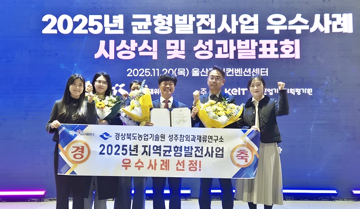 [½Ã»çÄÚ¸®¾ÆÀú³Î=±è¿¬ÇÐ ±âÀÚ] °æºÏµµ´Â 20ÀÏ ´ëÅë·É Á÷¼Ó Áö¹æ½Ã´ëÀ§¿øÈ¸°¡ ÁÖ°üÇÑ ‘2025³â Áö¿ª±ÕÇü¹ßÀü»ç¾÷ ¿ì¼ö»ç·Ê ½Ã»ó½Ä’¿¡¼ °æ»óºÏµµ³ó¾÷±â¼ú¿ø ¼ºÁÖÂü¿Ü°úä·ù¿¬±¸¼Ò°¡ Áö¿ª³ó¾÷¿¬±¸±â¹Ý ¹× Àü·«ÀÛ¸ñÀ°¼º(R&D) Áö¿ø°èÁ¤ ºÎ¹® ¿ì¼ö»ç·Ê·Î ¼±Á¤µÅ ¿ì¼ö ±â°ü»óÀ» ¹Þ¾Ò´Ù.