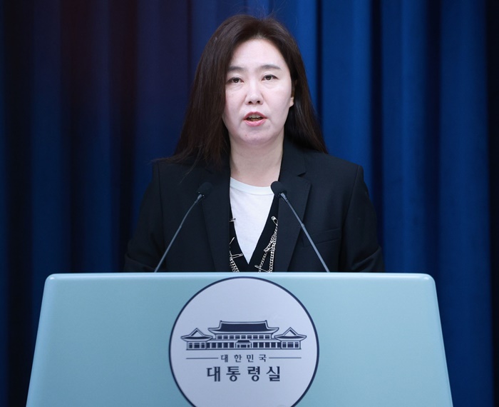 | °À¯Á¤ ´ëº¯ÀÎÀÌ 26ÀÏ ¿ë»ê ´ëÅë·É½Ç¿¡¼ »ç¹ý Çö¾È °ü·Ã ºê¸®ÇÎÀ» Çϰí ÀÖ´Ù. /´ëÅë·É½ÇÅë½Å»çÁø±âÀÚ´Ü |