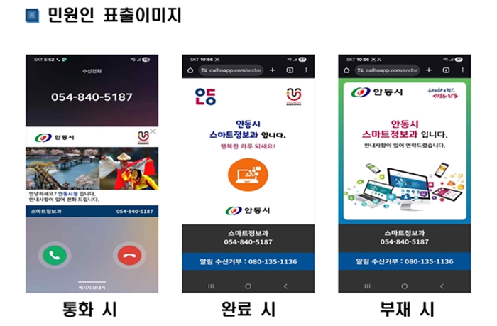 [½Ã»çÄÚ¸®¾ÆÀú³Î=±è¿¬ÇÐ ±âÀÚ] ¾Èµ¿½Ã´Â ÇàÁ¤ÀüÈ·Î ¹Î¿øÀο¡°Ô ÀüÈÇÒ ¶§ ¹Î¿øÀÎ ½º¸¶Æ®Æù ȸ鿡 ½Ãû À̹ÌÁö¿Í ÇÔ²² ºÎ¼¸í°ú ÀüȹøÈ£¸¦ Ç¥½ÃÇØ ÁÖ´Â ‘½º¸¶Æ®·¹Å͸µ ¼ºñ½º’¸¦ ¿À´Â 12¿ù 1ÀÏ(¿ù)ºÎÅÍ Àü¸é ½ÃÇàÇÑ´Ù°í ¹àÇû´Ù.