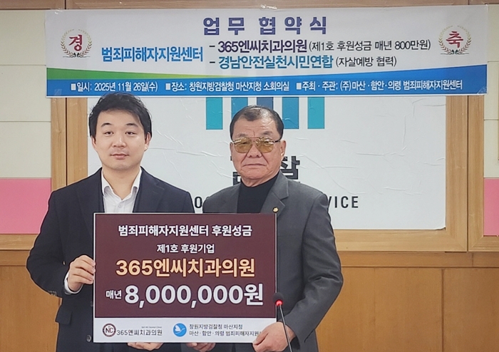 ¶ÇÇÑ 365¿£¾¾Ä¡°úÀÇ¿øÀº ¹üÁËÇÇÇØÀÚ º¸È£·Áö¿øÀ» À§ÇÏ¿© ¹üÁËÇÇÇØÀÚÁö¿ø¼¾ÅÍ¿¡ 2026³âºÎÅÍ ¸Å³â 800¸¸¿øÀ» ÈÄ¿øÇϱâ·Î ÇÏ¿©, Á¦1È£ ÈÄ¿ø±â¾÷À¸·Î ¼±Á¤µÆ´Ù.