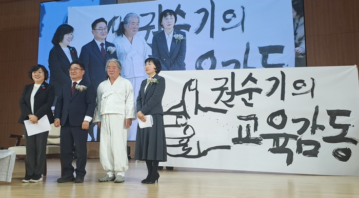| ±Ç¼ø±â Àü °æ»ó´ë ÃÑÀåÀÌ ÀÚ½ÅÀÇ ±³À° öÇаú °æÇèÀ» ´ã¾Æ ¹ß°£ÇÑ '±Ç¼ø±âÀÇ ±³À°°¨µ¿' ÃâÆÇ±â³äȸ¸¦ ¸¶Ä¡¸é¼ Âü¼®Àڵ鿡°Ô °¨»çÀÇ Àλ縦 ÀüÇϰí ÀÖ´Ù. |