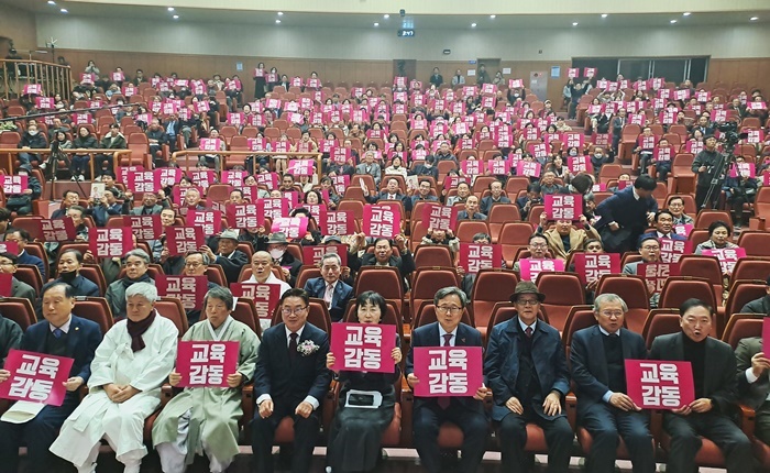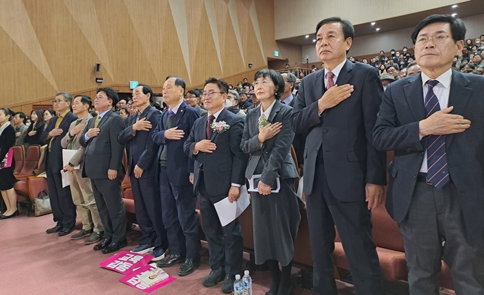 ¹Ú¿Ï¼ö °æ³²µµÁö»ç, °æ³²µµÀÇȸ ÃÖÇйü ÀÇÀå, ±ÇÁ¤È£ Àü ±³À°°¨, ¹ÚÀç¿Ï Àü ±âȹÀçÁ¤ºÎ Àå°ü, °ÁÖÈ£ Çѱ¹±³ÃÑȸÀå µî Á¤°è ¹× ±³À°°è ÀÎ»ç ´Ù¼ö´Â ¿µ»óÀ» ÅëÇØ ÃàÇÏ ¸Þ½ÃÁö¸¦ ÀüÇß´Ù.