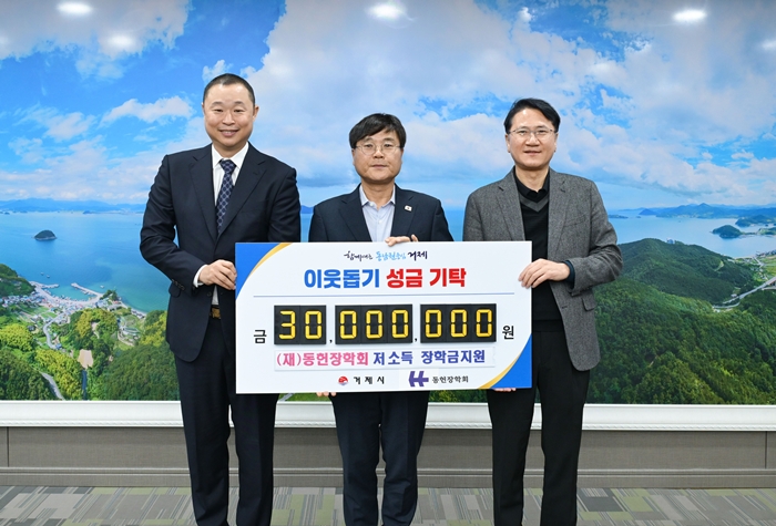 [½Ã»çÄÚ¸®¾ÆÀú³Î=Á¤Á¾¹Î ¼±ÀÓ±âÀÚ] °ÅÁ¦½Ã(½ÃÀå º¯±¤¿ë)´Â Áö³ 26ÀÏ, (Àç)µ¿ÇåÀåÇÐȸ(ÀÌ»çÀå °Áø¿ë)°¡ °ü³» Àú¼Òµæ °¡Á¤ ÇлýµéÀÇ Çо÷ Áö¿øÀ» À§ÇØ ÀåÇÐ±Ý 3,000¸¸ ¿øÀ» ±âŹÇß´Ù°í ¹àÇû´Ù.