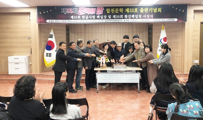[½Ã»çÄÚ¸®¾ÆÀú³Î=Á¤Á¾¹Î ¼±ÀÓ±âÀÚ] Á¦33ȸ ÇÕõ¹®ÀÎÇùȸ ‘¹®ÇÐÀÇ ¹ã’ Çà»ç°¡ Áö³ 28ÀÏ ÇÕõÀ¾»ç¹«¼Ò 3Ãþ ȸÀǽǿ¡¼ 100¿© ¸íÀÇ ¹®ÀÎ ¹× Áö¿ªÁÖ¹ÎÀÌ Âü¼®ÇÑ °¡¿îµ¥ ¼ºÈ²¸®¿¡ ¸¶¹«¸®µÆ´Ù.