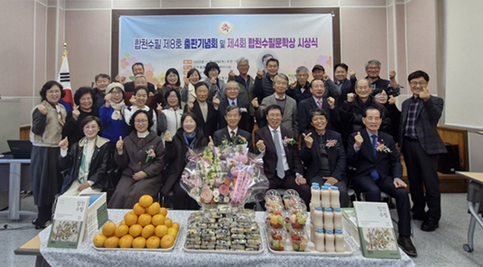 [½Ã»çÄÚ¸®¾ÆÀú³Î=Á¤Á¾¹Î ¼±ÀÓ±âÀÚ] ÇÕõ¼öÇʹ®ÇÐȸ´Â 11¿ù 29ÀÏ ÀÌÁÖÈ«¾î¸°À̹®Çаü ¼¼¹Ì³ª½Ç¿¡¼ ¹®ÇÐȸ ¹× ÇÕõ±º °ü°èÀÚ µî 40¿© ¸íÀÌ Âü¼®ÇÑ °¡¿îµ¥ Á¦ 8ȸ 'ÇÕõ¼öÇÊ' ÃâÆÇ±â³ä½Ä ¹× Á¦ 4ȸ ÇÕõ¼öÇʹ®Çлó ¼ö»ó½ÄÀ» °³ÃÖÇß´Ù.