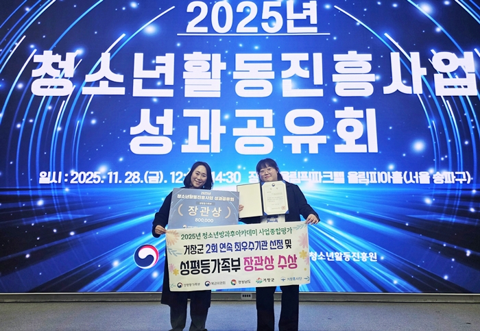 [½Ã»çÄÚ¸®¾ÆÀú³Î=Á¤Á¾¹Î ¼±ÀÓ±âÀÚ] °Åⱺ û¼Ò³â¹æ°úÈľÆÄ«µ¥¹Ì(°ÅâÈï»ç´Ü ¿î¿µ)´Â Áö³ 28ÀÏ¿¡ ¼¿ï¿Ã¸²ÇÈÆÄÅ©ÅÚ¿¡¼ ¿¸° ‘2025³â û¼Ò³â¹æ°úÈľÆÄ«µ¥¹Ì »ç¾÷ Á¾ÇÕÆò°¡’¿¡¼ ÃÖ¿ì¼ö±â°üÀ¸·Î ¼±Á¤µÅ ¼ºÆòµî°¡Á·ºÎ Àå°ü»óÀ» ¼ö»óÇß´Ù°í ¹àÇû´Ù.