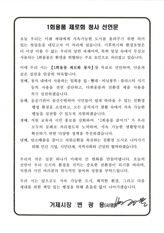 Âü¼®ÀÚµéÀº ¡âû»ç ³» 1ȸ¿ëǰ »ç¿ë Áß´Ü ¡â´Ùȸ¿ëǰ°ú ģȯ°æÁ¦Ç° »ç¿ë »ýÈ°È ¡â°ø°ø±â°üÀÇ Ä£È¯°æ ÇàÁ¤È¯°æ Á¶¼º ¡âÁ÷¿ø´ë»ó ±³À°․È«º¸ °È ¡â¹Î°£±â¾÷․½Ã¹Î´Üü․Áö¿ª»çȸ¿ÍÀÇ Çù·Â µî ½ÇõÇÒ °ÍÀ» °øµ¿À¸·Î ´ÙÁüÇß´Ù.