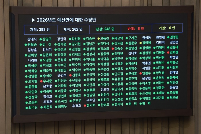 | ¿¹»ê¾È ó¸® ¹ýÁ¤ ½ÃÇÑÀÎ 2ÀÏ ±¹È¸ º»È¸ÀÇ¿¡¼ 2026³âµµ ¿¹»ê¾È¿¡ ´ëÇÑ ¼öÁ¤¾ÈÀÌ °¡°áµÇ°í ÀÖ´Ù. /¿¬ÇÕ´º½º |