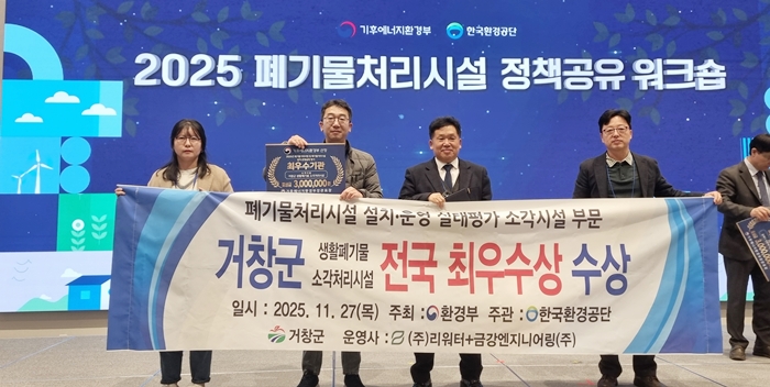 [½Ã»çÄÚ¸®¾ÆÀú³Î=Á¤Á¾¹Î ¼±ÀÓ±âÀÚ] °ÅⱺÀÌ Áö³´Þ 27ÀÏ ±âÈÄ¿¡³ÊÁöȯ°æºÎ°¡ ÁÖ°üÇϰí Çѱ¹È¯°æ°ø´ÜÀÌ ½ÃÇàÇÑ 2025³â Æó±â¹°Ã³¸®½Ã¼³ ¿î¿µ·½ÇÅ Æò°¡¿¡¼ Àü±¹ ÃÖ¿ì¼ö½Ã¼³·Î ¼±Á¤µÆ´Ù.