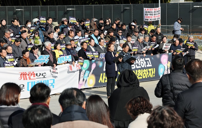 [½Ã»çÄÚ¸®¾ÆÀú³Î=Àü±¹Á¾ÇÕ] 12·3 ºñ»ó°è¾ö »çÅ 1ÁÖ³âÀÎ 3ÀÏ Àü±¹¿¡¼ ½Ã¹Î»çȸ¿Í Á¤´ç, Áøº¸ ´ÜüµéÀÌ ÀÕµû¶ó ±âÀÚȸ°ß°ú Áýȸ¸¦ ¿°í '³»¶õ ¼¼·Â û»ê'°ú '»çȸ ´ë°³Çõ'À» Ã˱¸Çß´Ù.