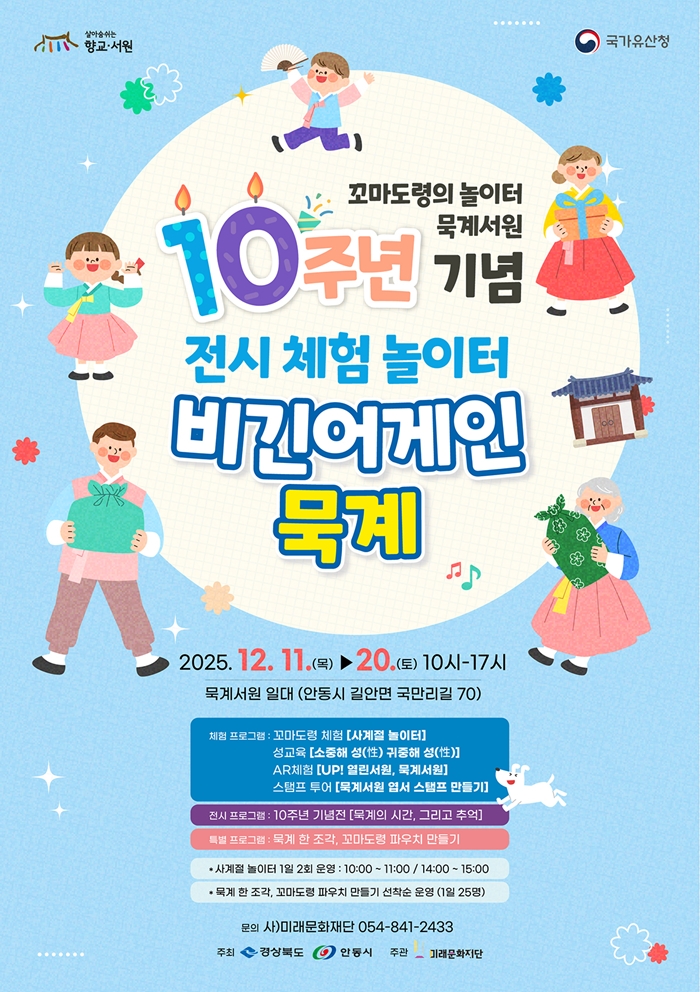 [½Ã»çÄÚ¸®¾ÆÀú³Î=±è¿¬ÇÐ ±âÀÚ] »ç´Ü¹ýÀÎ ¹Ì·¡¹®ÈÀç´Ü(ÀÌ»çÀå Á¤ÁÖÀÓ)ÀÌ ÁÖ°üÇÏ´Â '²¿¸¶µµ·ÉÀÇ ³îÀÌÅÍ ¹¬°è¼¿ø'ÀÇ 10ÁÖ³â Æ¯º° ÇÁ·Î±×·¥ ‘ºñ±ä¾î°ÔÀÎ ¹¬°è’°¡ ¿À´Â 12¿ù 11ÀÏ(¸ñ)ºÎÅÍ 20ÀÏ(Åä)±îÁö 10Àϰ£ ¹¬°è¼¿ø ÀÏ¿ø¿¡¼ ÁøÇàµÈ´Ù.