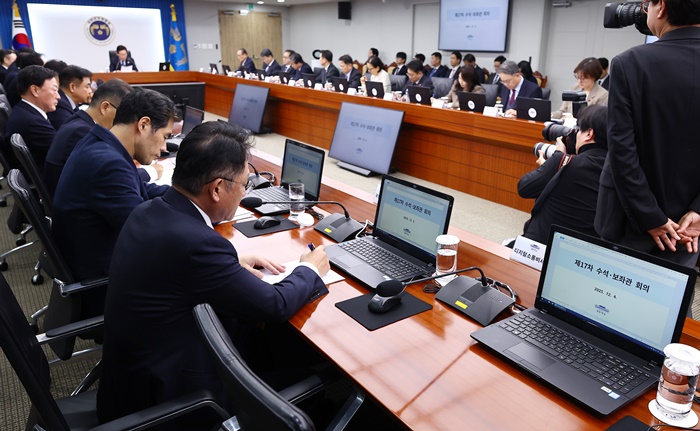 | 4ÀÏ ¿ë»ê ´ëÅë·É½Ç¿¡¼ ÀÌÀç¸í ´ëÅë·É ÁÖÀç·Î ÁøÇàµÈ ¼ö¼®º¸Á°üȸÀÇ¿¡¼ ȸÀÇ ÃÊ¹Ý ±è³²±¹ µðÁöÅмÒÅëºñ¼°ü ÀÚ¸®°¡ ºñ¾î ÀÖ´Ù. /¿¬ÇÕ´º½º |
