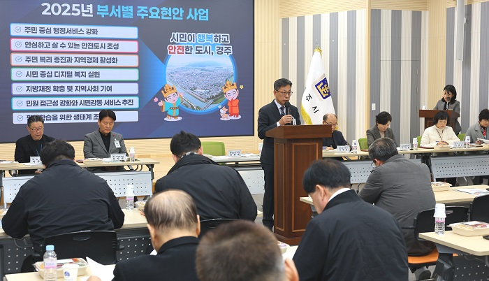 [½Ã»çÄÚ¸®¾ÆÀú³Î=°æºÏÃëÀ纻ºÎ] °æÁֽô 3ÀÏ ½Ãû ´ëȸÀǽǿ¡¼ '2025³â ½ÃÁ¤Çö¾È ÇàÁ¤¾ÈÀü±¹ ¾ð·Ðºê¸®ÇÎ'À» ¿°í, Áö³ÇØ ÁÖ¿ä ¼º°ú¿Í APEC ¿¬°è ÁÖ¿ä »ç¾÷, ¿ÃÇØ ºÎ¼º° ÁßÁ¡ ÃßÁø°úÁ¦¸¦ Á¾ÇÕ ¹ßÇ¥Çß´Ù.
