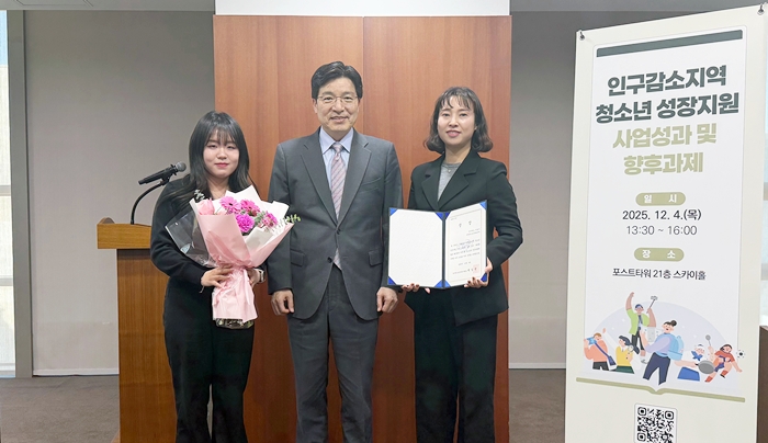 [½Ã»çÄÚ¸®¾ÆÀú³Î=±è¿¬ÇÐ ±âÀÚ] ¼ºÆòµî°¡Á·ºÎ°¡ ÁÖÃÖÇÑ ‘2025³â Àα¸°¨¼ÒÁö¿ª û¼Ò³â¼ºÀåÁö¿ø»ç¾÷’ ¿ì¼öÁö¿ª ½Ã»ó½ÄÀÌ 4ÀÏ ¼¿ï Æ÷½ºÆ®Å¸¿ö¿¡¼ ¿¸° °¡¿îµ¥, ¾Èµ¿½Ã°¡ Çѱ¹Ã»¼Ò³âÁ¤Ã¥¿¬±¸¿øÀå»óÀ» ¼ö»óÇß´Ù.