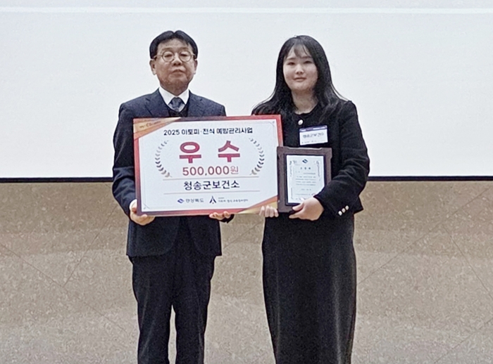 [½Ã»çÄÚ¸®¾ÆÀú³Î=±è¿¬ÇÐ ±âÀÚ] û¼Û±ºº¸°ÇÀÇ·á¿ø(¿øÀå À±È«¹è)Àº Áö³ 1ÀÏ ¾Èµ¿ ±×·£µåÈ£ÅÚ¿¡¼ ¿¸° ‘2025³â ¾ÆÅäÇǷõ½Ä ¿¹¹æ°ü¸®»ç¾÷ ¼º°ú´ëȸ’¿¡¼ ¿ì¼ö±â°üÀ¸·Î ¼±Á¤µÅ ¿ì¼ö»óÀ» ¼ö»óÇß´Ù°í ¹àÇû´Ù.