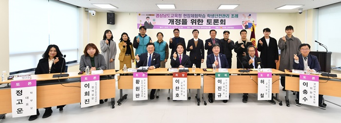 [½Ã»çÄÚ¸®¾ÆÀú³Î=Á¤Á¾¹Î ¼±ÀÓ±âÀÚ] °æ³²µµÀÇȸ ÀÌÂùÈ£ ±³À°À§¿øÀå(±¹¹ÎÀÇÈû, â¿ø5)Àº ÇöÀåüÇèÇнÀ ¾ÈÀü»ç°í À§Çè¿¡ ´ëÀÀÇϰí, º¸´Ù ±¸Ã¼ÀûÀ̰í ü°èÀûÀÎ ¾ÈÀü°ü¸® ±âÁØÀ» ¸¶·ÃÇϱâ À§ÇØ ¡¸°æ»ó³²µµ±³À°Ã» ÇöÀåüÇèÇнÀ Çлý¾ÈÀü°ü¸® Á¶·Ê °³Á¤ ¹æÇâ Åä·Ðȸ¡¹¸¦ °³ÃÖÇß´Ù.