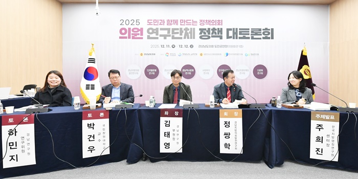 1ÀÏÂ÷´Â ¡â°æ³²Áö¹æÀÇȸ¹ßÀü¿¬±¸È¸ ¡âµðÁöÅй®ÇØ¿¬±¸È¸ ¡â°æ³²±³À°¹ßÀü¿¬±¸È¸ ¡â°æ³²¿ª»ç¹®È¿¬±¸È¸ ³× °³ ¿¬±¸´Üü°¡ 2025³â¿¡ ¼öÇàÇÑ Á¤Ã¥¿¬±¸ °á°ú¸¦ Áß½ÉÀ¸·Î ¹ßÇ¥¿Í Åä·ÐÀ» ÁøÇàÇß´Ù.
