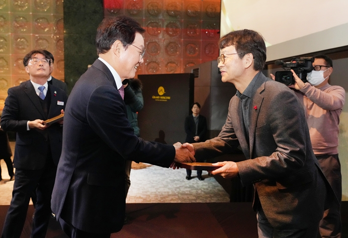 | °æ³²ÀºÇà»ç¶û³ª´®Àç´Ü °í¿µÁØ ºÎÀÌ»çÀå(»çÁø ¿À¸¥ÂÊ)ÀÌ ‘2025³â °æ»ó³²µµ »çȸ°øÇåÀÚÀÇ ³¯ Çà»ç’¿¡ Âü¼®ÇØ °æ»ó³²µµ ¹Ú¿Ï¼ö µµÁö»ç·ÎºÎÅÍ ‘°æ»ó³²µµÁö»ç ǥâ’À» ¹Þ°í ÀÖ´Ù. |