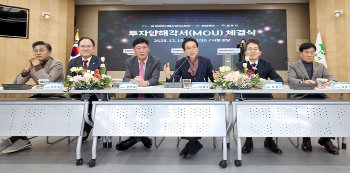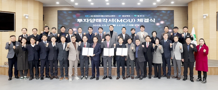 [½Ã»çÄÚ¸®¾ÆÀú³Î=±è¿¬ÇÐ ±âÀÚ] °æºÏµµ¿Í ¿µÁֽô 15ÀÏ ¿µÁÖ½Ãû °´ç¿¡¼ ÀÌö¿ì °æ»óºÏµµÁö»ç, À¯Á¤±Ù ¿µÁÖ½ÃÀå ±ÇÇÑ´ëÇà, ÀÓÁ¾µæ ±¹È¸ÀÇ¿ø, ¹Ú¼º¸¸ °æºÏµµÀÇȸ ÀÇÀå, ±èº´±â ¿µÁÖ½ÃÀÇȸ ÀÇÀå, Á¤Á¤¸ð ¢ßÄÚ¸®¾ÆµðÆæ½ºÀδõ½ºÆ®¸® ´ëÇ¥ µî 20¿© ¸íÀÌ Âü¼®ÇÑ °¡¿îµ¥ ¢ßÄÚ¸®¾ÆµðÆæ½ºÀδõ½ºÆ®¸®¿Í °æ»óºÏµµ·¿µÁֽà °£ ÅõÀÚ¾çÇØ°¢¼(MOU)¸¦ ü°áÇß´Ù.