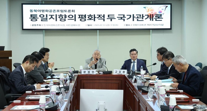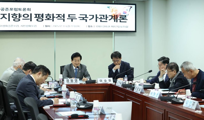 [½Ã»çÄÚ¸®¾ÆÀú³Î=Á¤Á¾¹Î ¼±ÀÓ±âÀÚ] ´õºÒ¾î¹ÎÁÖ´ç Á¤µ¿¿µ ÀÇ¿øÀÌ ´ëÇ¥¸¦ ¸Ã°íÀÖ´Â ±¹È¸ÀÇ¿ø¿¬±¸´Üü ‘µ¿ºÏ¾ÆÆòȰøÁ¸Æ÷·³’Àº 12ÀÏ ±¹È¸ÀÇ¿øÈ¸°ü Á¦4°£´ãȸÀǽǿ¡¼ ‘ÅëÀÏ ÁöÇâÀÇ ÆòÈÀû µÎ ±¹°¡°ü°è·Ð’ ÁÖÁ¦·Î Åä·Ðȸ¸¦ °³ÃÖÇß´Ù.