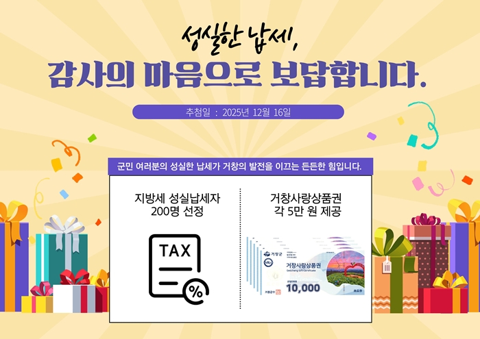 À̹ø ¼±Á¤Àº ¡¸°Åⱺ ¼º½Ç³³¼¼ÀÚ µî Áö¿øÁ¶·Ê¡¹¿¡ µû¶ó ÃÖ±Ù 3³â ÀÌ»ó ü³³ ¾øÀÌ Áö¹æ¼¼¸¦ ¼º½ÇÈ÷ ³³ºÎÇÑ ³³¼¼ÀÚ¸¦ ´ë»óÀ¸·Î ÁøÇàµÆÀ¸¸ç, Áö¹æ¼¼Á¤º¸½Ã½ºÅÛÀ» Ȱ¿ëÇÑ Àü»ê Ãß÷À» ÅëÇØ ¼±Á¤µÈ 200¸í¿¡°Ô °¨»ç¼Çѹ®°ú °Åâ»ç¶û»óǰ±Ç 5¸¸ ¿øÀ» Àü´ÞÇß´Ù.