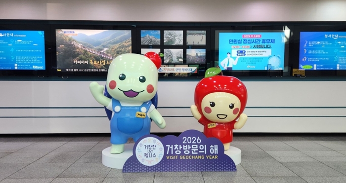 [½Ã»çÄÚ¸®¾ÆÀú³Î=Á¤Á¾¹Î ¼±ÀÓ±âÀÚ] °ÅⱺÀº °ü±¤Ä³¸¯ÅÍ ‘°Åº¹ÀÌ’¿Í ‘»ç°¢ÀÌ’ Á¶Çü¹°À» ±ºÃ» 1Ãþ ·Îºñ¿¡ ¼³Ä¡ÇØ ¹æ¹®°´µé¿¡°Ô »õ·Î¿î º¼°Å¸®¸¦ Á¦°øÇϰí, ij¸¯ÅÍ È«º¸¿Í ÇÔ²² ‘2026 °Å⠹湮ÀÇ ÇØ’ È«º¸¿¡ ³ª¼°í ÀÖ´Ù.