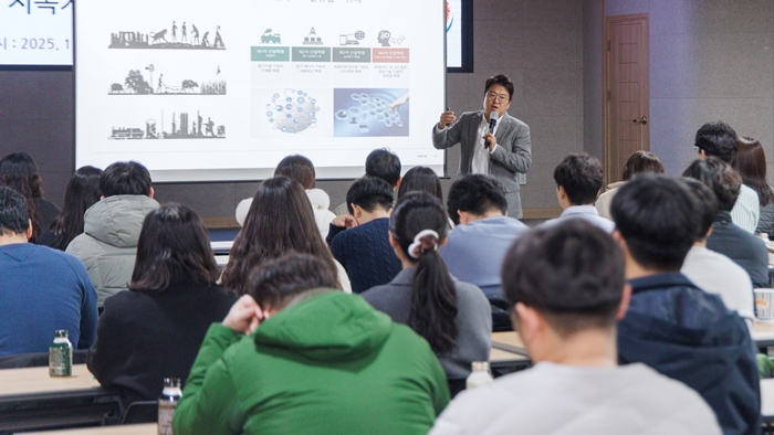 À̳¯ °¿¬Àº °æ»ó±¹¸³´ëÇб³ Áö¼Ó°¡´É¹ßÀü¼¾ÅÍ ±è¿µÃ¶ ¼¾ÅÍÀåÀÌ ¸Ã¾Æ Áö¼Ó°¡´É¹ßÀüÀÇ ±âº» °³³ä, Áö¼Ó°¡´ÉÇÑ »çȸÀÇ ÀǹÌ, ESGÀÇ µîÀå ¹è°æ, ±¹°¡ Áö¼Ó°¡´É¹ßÀü ¸ñÇ¥ µîÀ» Ÿ ÁöÀÚüÀÇ ÃßÁø »ç·Ê¸¦ µé¾î ½±°Ô ¼³¸íÇß´Ù.