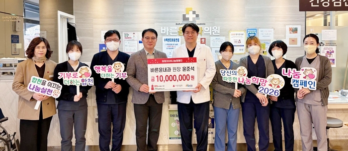 ¹Ù¸¥À±³»°úÀÇ¿øÀº ±×µ¿¾È ¸Å³â 1,000¸¸¿øÀÇ ¼º±ÝÀ» ²ÙÁØÈ÷ ±âºÎÇØ¿ÔÀ¸¸ç, À̹ø¿¡´Â ‘º¹Áö»ç°¢Áö´ë »çȸ¾ÈÀü¸Á ±¸Ãà»ç¾÷’À» ÅëÇØ ±âºÎ¸¦ ÁøÇàÇß´Ù.