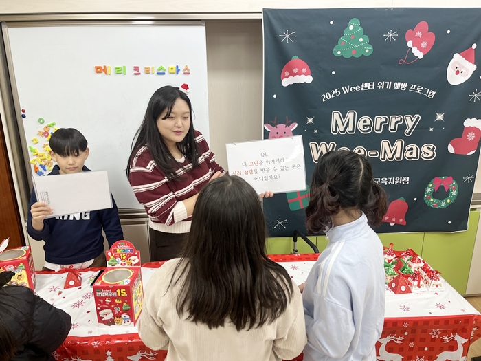 [½Ã»çÄÚ¸®¾ÆÀú³Î=±è¿¬ÇÐ ±âÀÚ] °æ»óºÏµµ¿µ¾ç±³À°Áö¿øÃ» Wee¼¾ÅÍ(±³À°Àå ¹Ú±ÙÈ£)´Â 12¿ù 15ÀϺÎÅÍ 24ÀϱîÁö °ü³» ½Åû Çб³¸¦ ´ë»óÀ¸·Î ¿¬¸» ¹× Çгâ Àüȯ±â¸¦ ´ëºñÇÑ Ã£¾Æ°¡´Â À§±â ¿¹¹æ ÇÁ·Î±×·¥ <Merry Wee-mas>¸¦ ¿î¿µÇß´Ù.