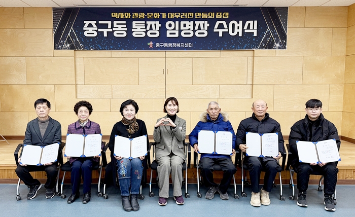[½Ã»çÄÚ¸®¾ÆÀú³Î=±è¿¬ÇÐ ±âÀÚ] ¾Èµ¿½Ã Áß±¸µ¿Àº Áö³ 26ÀÏ Áß±¸µ¿ÇàÁ¤º¹Áö¼¾ÅÍ È¸Àǽǿ¡¼ ‘2025³â 12¿ù ÅëÀåȸÀÇ ¹× 2026³â 1ºÐ±â ÅëÀå ÀÓ¸íÀå ¼ö¿©½Ä’À» °³ÃÖÇß´Ù.