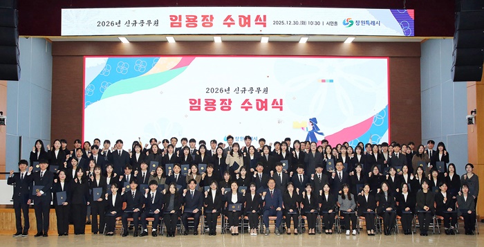 [½Ã»çÄÚ¸®¾ÆÀú³Î=Á¤Á¾¹Î ¼±ÀÓ±âÀÚ] â¿ø½Ã´Â 30ÀÏ ½Ãû ½Ã¹ÎȦ¿¡¼ ‘2026³â ½Å±Ô°ø¹«¿ø ÀÓ¿ëÀå ¼ö¿©½Ä’À» °³ÃÖÇϰí, ½Å±Ô°ø¹«¿ø 112¸í¿¡°Ô ÀÓ¿ëÀåÀ» ¼ö¿©Çß´Ù.