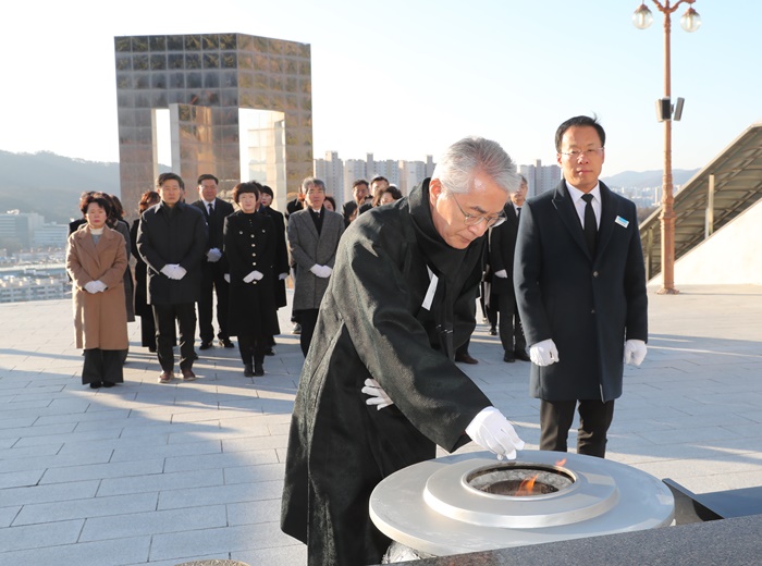 [½Ã»çÄÚ¸®¾ÆÀú³Î=Á¤Á¾¹Î ¼±ÀÓ±âÀÚ] ¹ÚÁ¾ÈÆ °æ³²±³À°°¨Àº º´¿À³â »õÇØ¸¦ ¸Â¾Æ 2ÀÏ ¿ÀÀü 9½Ã ±¹¸³3.15¹ÎÁÖ¹¦Áö¸¦ ã¾Æ ¹ÎÁÖ ¿µ·ÉµéÀÇ ³ÌÀ» ±â¸®¸ç »õÇØ °¢¿À¸¦ ´ÙÁ³´Ù.