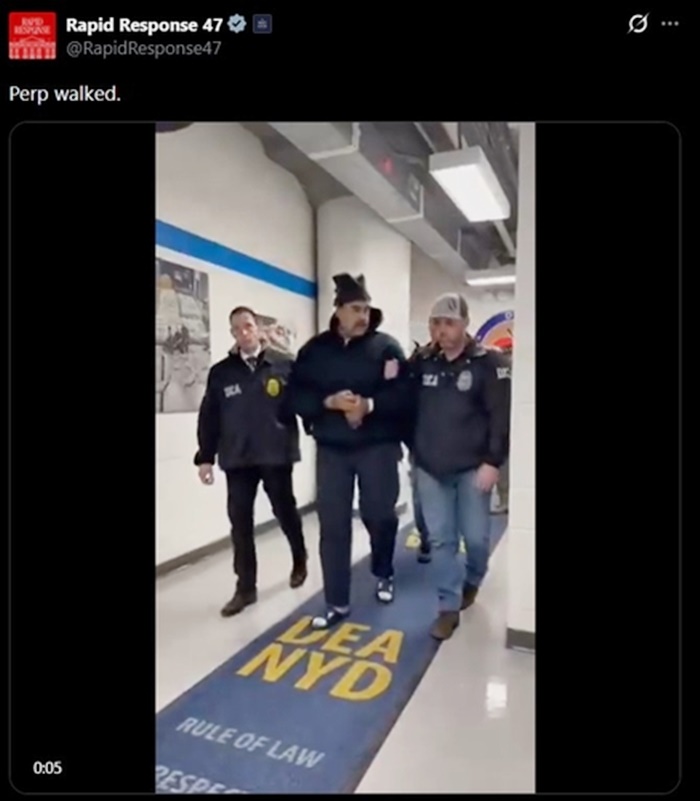 ÀÌ¾î ¹é¾Ç°üÀÇ ¿¢½º(X) ±ä±Þ´ëÀÀ °èÁ¤Àº '¹üÁËÀÚ°¡ °É¾î°¬´Ù'(perp walked)´Â Á¦¸ñÀ¸·Î ¸¶µÎ·Î°¡ DEA ´º¿å ÁöºÎ °Ç¹° ¾È º¹µµ¿¡¼ ¿¬ÇàµÇ´Â ¿µ»óÀ» °øÀ¯Çß´Ù.