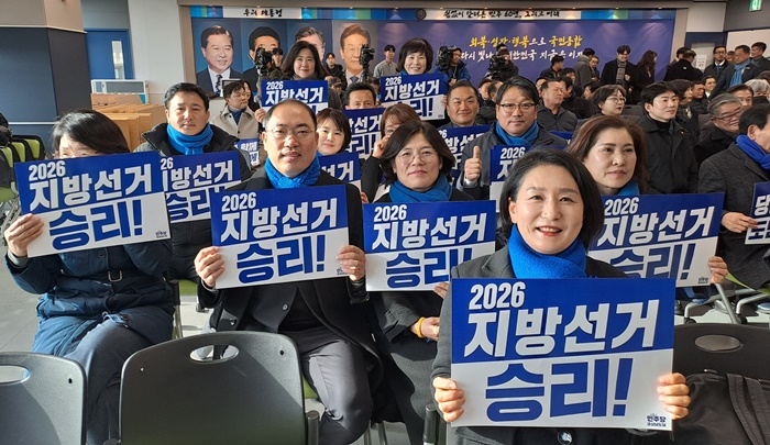 | ´õºÒ¾î¹ÎÁÖ´ç °æ³²µµ´çÀº 5ÀÏ ¿ÀÀü 10½Ã â¿ø½Ã ÀÇⱸ °æ³²µµ´ç ¹ÎÁÖȦ¿¡¼ '2026³â ´Ü¹è½Ä(½Å³âÀλçȸ)'À» ¿¾ú´Ù. »çÁøÀº Áö¿ªÀ§¿øÀå µîÀÌ 6¿ù Áö¹æ¼±°Å ½Â¸®¸¦ ´ÙÁüÇϰí ÀÖ´Â ¸ð½À. |