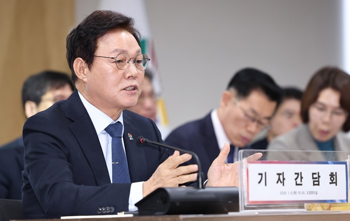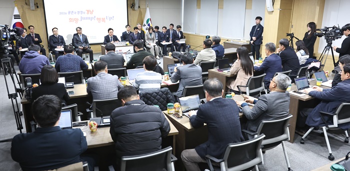 | ¹Ú¿Ï¼ö °æ³²Áö»ç°¡ 6ÀÏ 2026³â ½Å³â ±âÀÚ°£´ãȸ¸¦ Çϰí ÀÖ´Ù. |