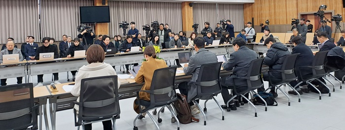 | ¹ÚÁ¾ÈÆ °æ³²±³À°°¨ÀÌ 6ÀÏ ¿ÀÀü º»Ã» ´ë°´ç¿¡¼ ½Å³â ±âÀÚ °£´ãȸ¸¦ °¡Áö¸é¼ ±âÀÚµéÀÇ Áú¹®¿¡ ´äº¯Çϰí ÀÖ´Ù. |