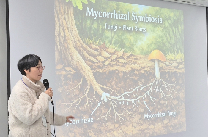 ´ëÈï¶õÀ» ºñ·ÔÇÑ º¸ÃáȼÓ(áÕ) ³Ãʵé°ú ÇÔ²² »ì¾Æ°¡´Â ±Õ·ù¸¦ ¿¬±¸ÇÑ À¯Å° ¿À±¸¶ó ±³¼ö´Â ´ëÈï¶õÀÌ ÀÌ½Ä ºÒ°¡´ÉÇÑ ÀÌÀ¯¿¡ ´ëÇØ “½Ä¹°µéÀº È¥ÀÚ »ì¾Æ°¡Áö ¾Ê´Â´Ù. À°»ó ½Ä¹°ÀÇ ¾à 80%´Â Åä¾ç ¼Ó ±Õ±Ù±Õ(Ð¶ÐÆÐ¶, mycorrhizal fungi)°ú °ø»ý °ü°è¸¦ ¸Î°í »ì¾Æ°£´Ù"¸é¼ "½Ä¹°ÀÌ ±¤ÇÕ¼ºÀ» ÅëÇØ ¾òÀº ź¼Ò¶ó´Â ¿µ¾çºÐÀ» ±Õ±Ù±Õµé¿¡°Ô ÁÖ°í ±Õ±Ù±ÕÀ¸·ÎºÎÅÍ Àΰú Áú¼Ò µîÀÇ ¹Ì¼¼ ¿µ¾ç¹°ÁúÀ» ¾ò´Â °ø»ý°ü°è¸¦ ¸Î´Â °Í"À̶ó°í ¼³¸íÇß´Ù.