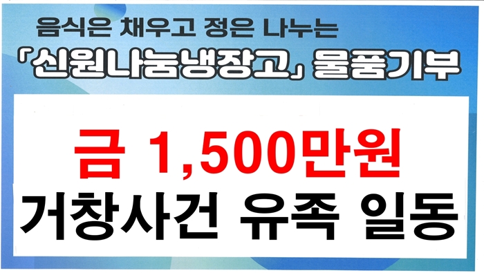 [½Ã»çÄÚ¸®¾ÆÀú³Î=Á¤Á¾¹Î ¼±ÀÓ±âÀÚ] °Åⱺ ½Å¿ø¸éÀº Áö³ 13ÀÏ À͸íÀÇ ±âºÎÀÚ°¡ ½Å¿ø¸éÁö¿ª»çȸº¸ÀåÇùÀÇü°¡ ¿î¿µÇÏ´Â ³ª´®³ÃÀå°í¿¡ 1,500¸¸¿ø ÈÄ¿ø±ÝÀ» Àü´ÞÇØ Å« Èñ¸Á°ú °¨µ¿À» ÀüÇß´Ù°í ¹àÇû´Ù.